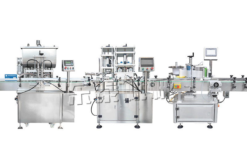 酱料灌装全套设备前段还可配备供瓶机、后端可以配打码机、装箱机、封箱机等,整套设备灌装工艺流程为:圆盘供瓶机自动往输送带上供瓶—全自动灌装机自动灌装—全自动提盖机自动理盖、提盖、挂盖—双头气囊式真空旋盖机高标准抽真空旋盖—全自动不干胶贴标机自动对圆瓶进行不干胶贴标——激光喷码机自动刻码—不锈钢整理平台人工装箱—机器自动纸箱封箱;另外,通过bet365体育的不断改善,酱料灌装全套设备还可以根据客户不同要求(例如有些客户瓶子为异形瓶、或者尺寸大小不一等)进行非标定做。