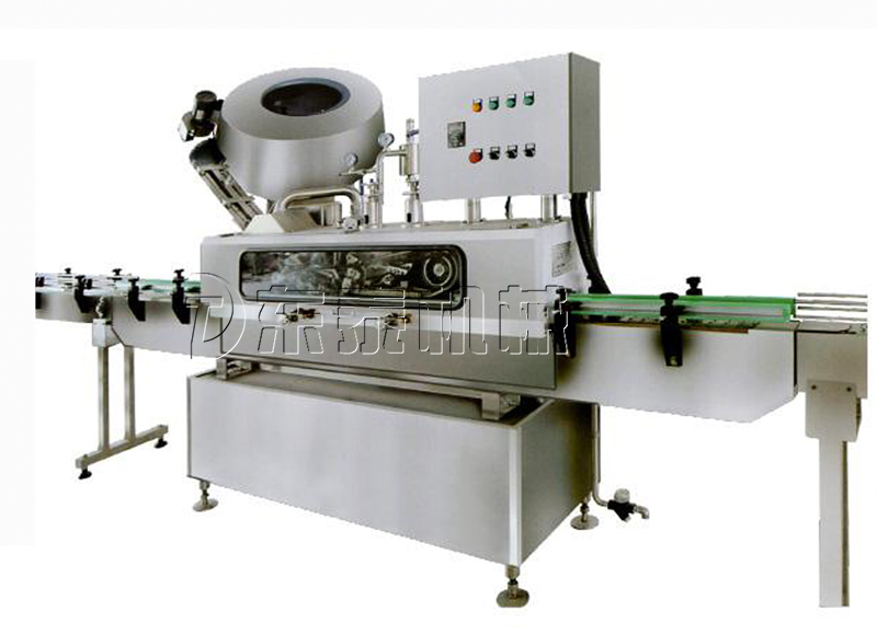蒸汽式真空旋盖机采用搓式旋盖技术,集自动理盖、上盖、蒸气喷射自动真空旋盖于一体,具有无瓶不送瓶,卡瓶、缺盖自动停机报警等功能,效率高,运行稳定可靠。可适用于圆形、方瓶等多种瓶形,适用性强,广泛应用于医药、食品、日化等行业。
