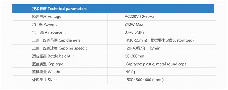 5、扩大了使用范围,可用于各种类型(铝质盖、塑料盖、罐头)瓶盖的封口。