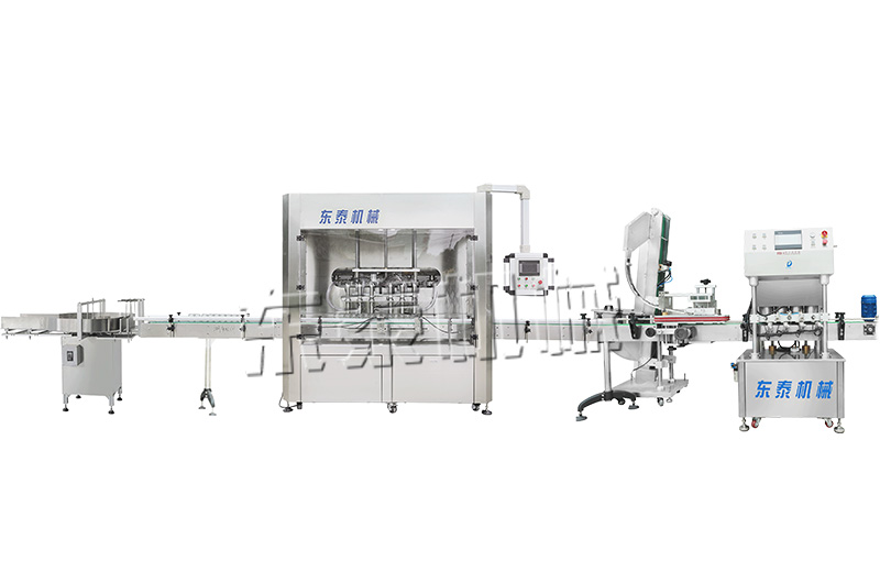 整线是集灌装旋盖贴标于一体的全自动化设备,适合灌装各种带颗粒并且浓度较大的辣椒酱、果酱等较为粘稠酱类的灌装旋盖贴标打码。集自动进瓶、自动理盖上盖、自动抽真空旋盖、自动出瓶于一体,适合玻璃瓶马口铁盖子的理想的抽真空旋盖设备。贴标机是适合各种尺寸的圆形瓶贴标,使标签附著更加牢固,前后段可选连线使用.