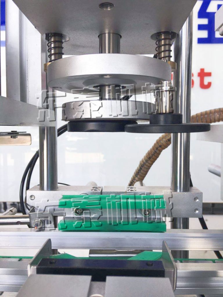 全自动双工位真空旋盖机是我司新研发的一款全自动辣椒酱瓶自动旋盖机,采用抽真空技术和自动化技术相结合,集自动抽真空旋盖于一体,自动化程度非常高,采用气囊式封盖机构,用于酱料产品、辣椒酱瓶、调味品、罐头、果酱、蜂蜜等玻璃瓶罐头的自动抽真空旋盖设备,全自动双工位真空旋盖机的操作人员只需将瓶盖置于理料盘上,瓶子在向前运行的过程中,瓶盖被自动抽真空拧紧,大大提升了企业的工作效率,其独特新颖的设计理念,收到众多酱料食品厂、调味品食品厂、高档食品生产企业的青睐。辣椒酱瓶自动旋盖机集自动理盖、挂盖上盖、自动旋盖于一体,生产速度快,效率高,运行稳定可靠。