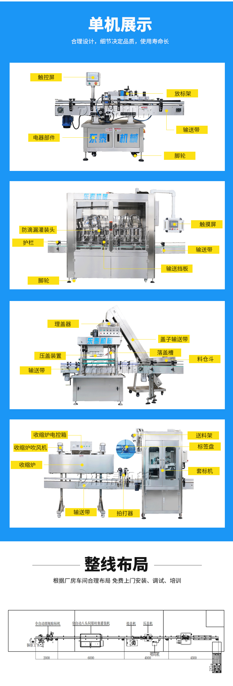 酱料灌装机生产线采用活塞式伺服系统驱动原理,适用于粘流体中带小颗粒并且可流动的较为粘稠的物料灌装。比如:洗衣液、洗洁精、甜面酱、沙拉酱、芝麻酱、食用油等的灌装。设备采用伺服系统定量推料,在人机界面数字化调节计量,并且可设定所需计量,触摸屏一触即达,而且可以单头微调计量。操作简单,维护方便,节省人工成本,生产效率更高。